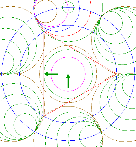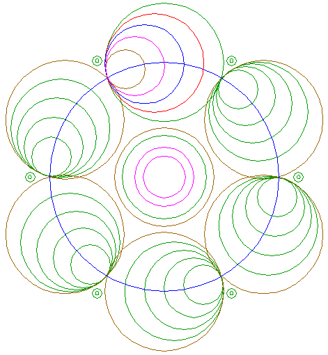 | Construct a circle concentric to circle 1, tangent to circle 30 at the upper side. See detail. |