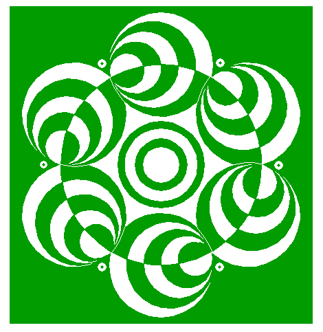 | Copy circle 3 five times, to every second angular point of dodecagon 2, as shown. |