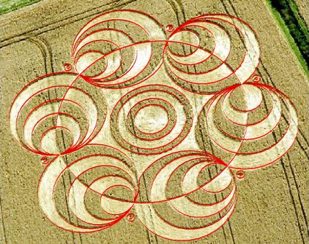 | Construct a circle (concentric to circle 1) through the inner mutual intersections of circles 3 and 4. |