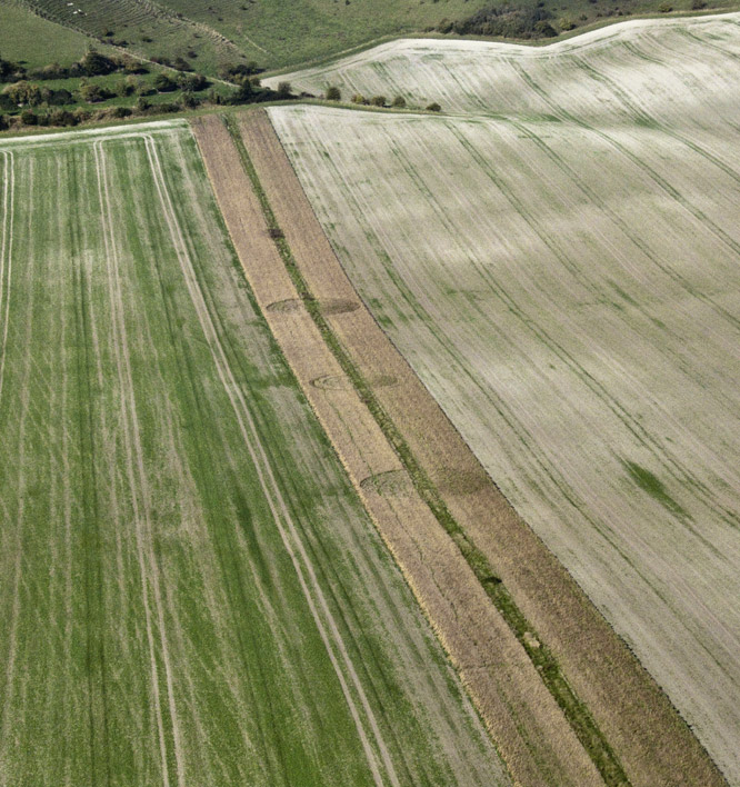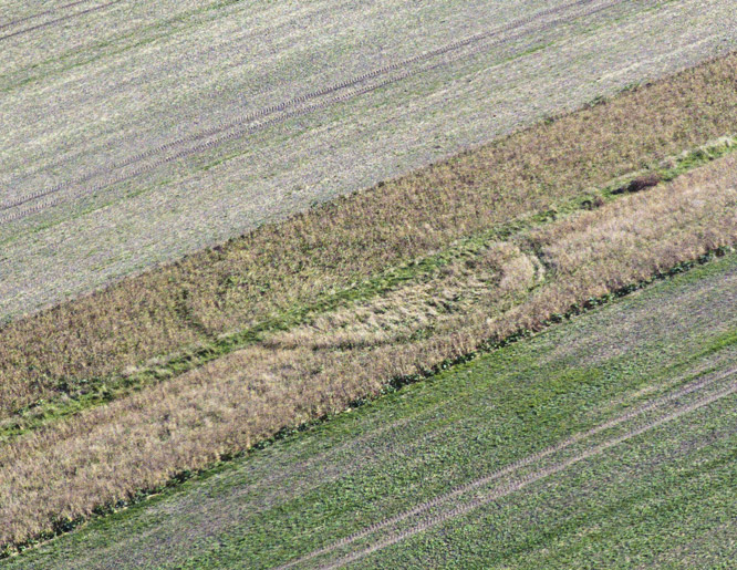 let’s say between 2 fields that are themselves separated by a strip of grass. It