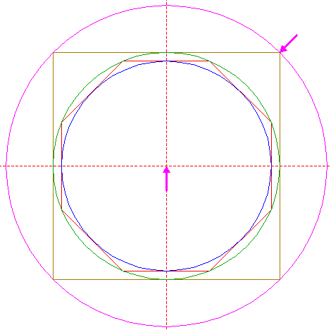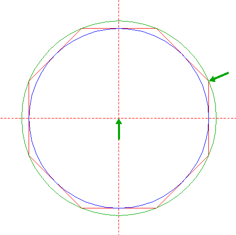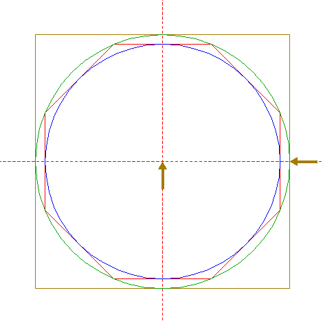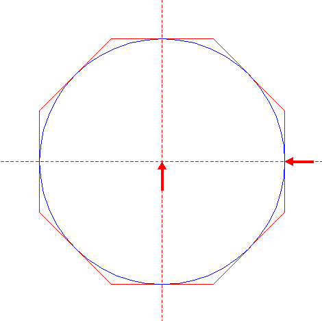 | Construct the circumscribed octagon of circle 8, the mid-point of one side coincident with the horizontal centerline. |