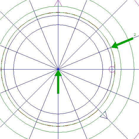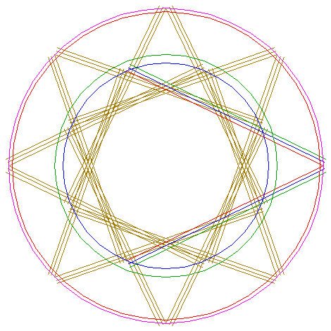 | Draw the fourty rays from the center of circle 1 to the angular points of polygon 38. |