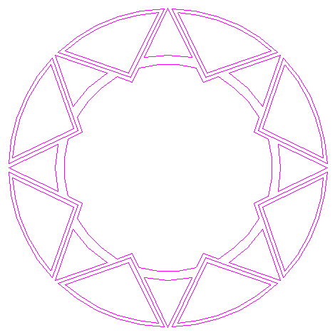 | Copy lines 7, 21 and 23, as a whole seven times, while rotating about the center of circle 1, each 45° apart. |