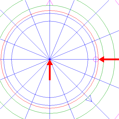 | Copy circle 15 to the righthand intersection of circle 5 and the horizontal centerline. |