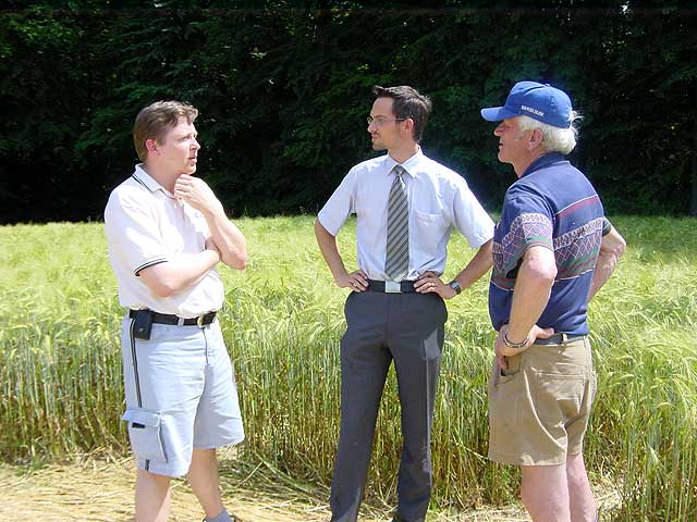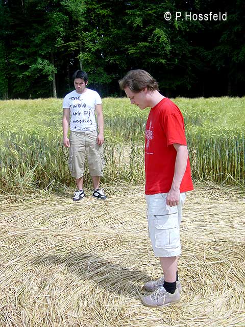 An astonishing crop formation was detected on last Friday morning in front of the entrance building of the Mystery Park in Interlaken, where the big crop circle exhibition takes place. In the night before some technicians installed webcams, which originally should document the making of a bigger (and komplex) crop formation, planned for this weekend. Because of the surprising appearance of a crop circle overnight this event was cancelled. Jay Goldner is investigating. Werner Anderhub was there, too. What's going on here? We don't know for the moment. A part of the real phenomenon?